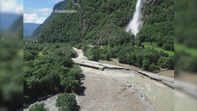 Das Ausmass des Schadens an der A13 im Kanton Graubünden nach den heftigen Unwettern der letzten Tage wird immer deutlicher. Die wichtige Nord-Süd-Achse dürfte monatelang geschlossen bleiben und damit drohen Versorgungsengpässe in der Ostschweiz und ein Verkehrschaos am Gotthard.