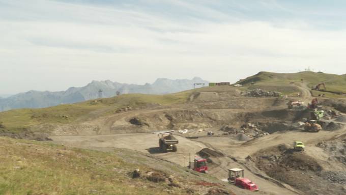 Auf dem Pizol im Sarganserland wird derzeit im grossen Stil gebaut. Auf über 2000 Meter über Meer stehen zahlreiche Baumaschinen, um einen See für die künstliche Beschneiung zu schaffen.